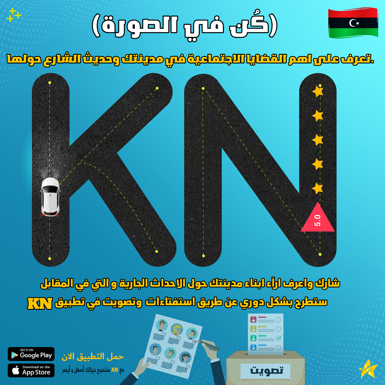 في عالم مليء بالتحديات والمشكلات الاجتماعية، أصبح من الضروري توجيه الضوء نحو القضايا العاجلة التي تؤثر على حياة الناس، واستجابةً لهذه الحاجة، يأتي تطبيق KN مع خدمة استطلاع الرأي التي تساهم في تقريب وجهات النظر ومناقشة القضايا الاجتماعية في المدن الليبية المختلفة، وفي كل مدينة على حدى حسب الاولوية ورغبة السكان والاحداث الجارية بها، وذلك لاجل تقريب وجهات النظر بين السكان وتوجيه التفكير العام لإيجاد حلول مناسبة ومشتركة تفيد المدينة والمنطقة بالكامل.